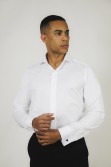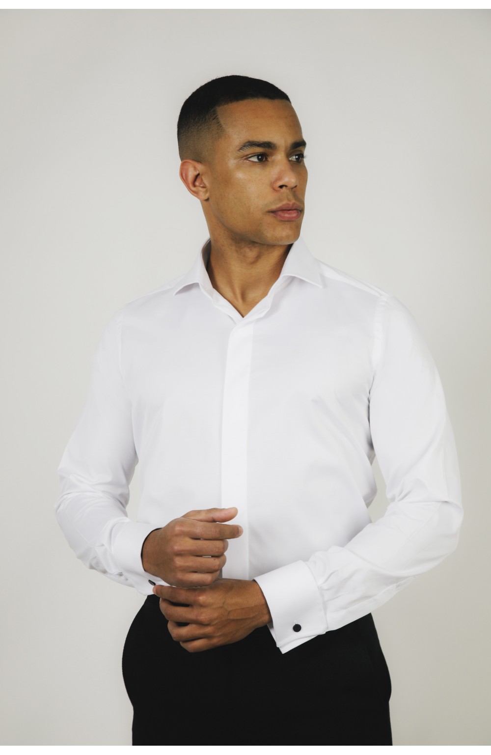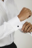 Camisa gala microestructura entallada, con botones ocultos y puño doble para gemelos. Impecable con corbata, y perfecta para ceremonias y ocasiones especiales.