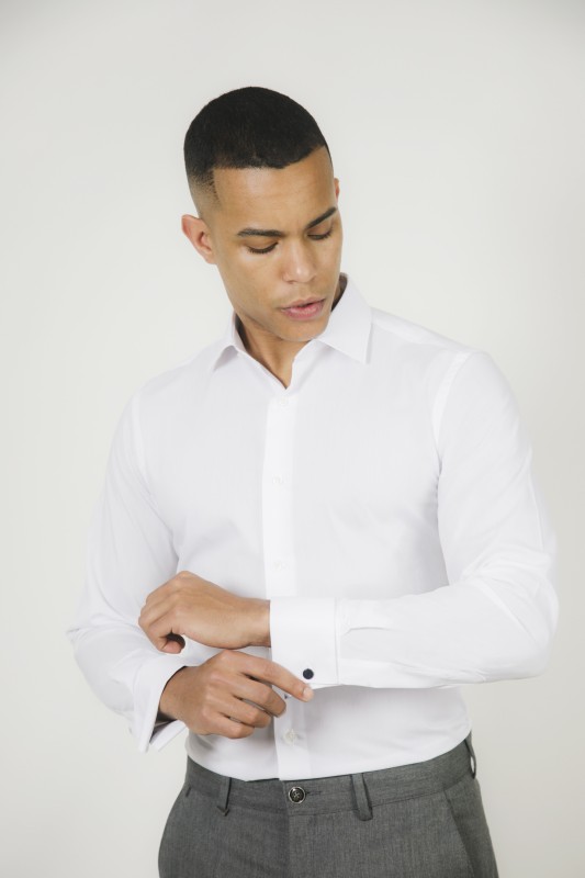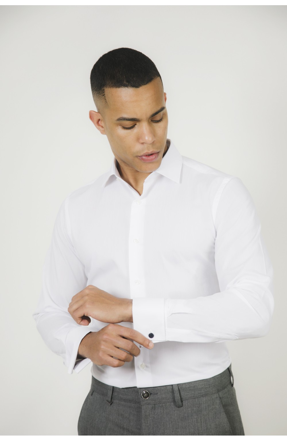 Camisa lisa de vestir semi entallada, popelín "fácil plancha" y puños dobles para gemelos. Te dará una imagen exclusiva, perfecta para corbata, y para todos los compromisos personales, sociales o de oficina.