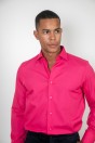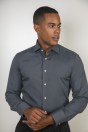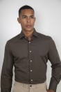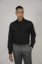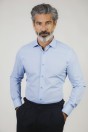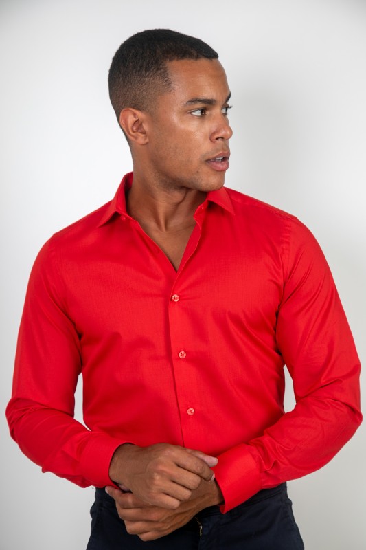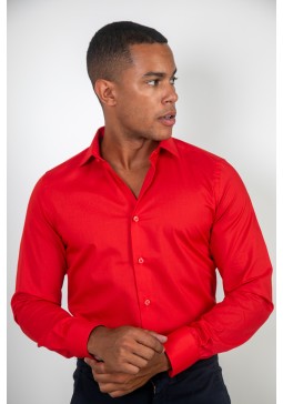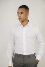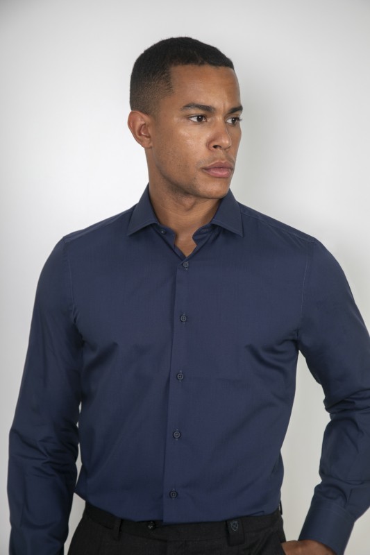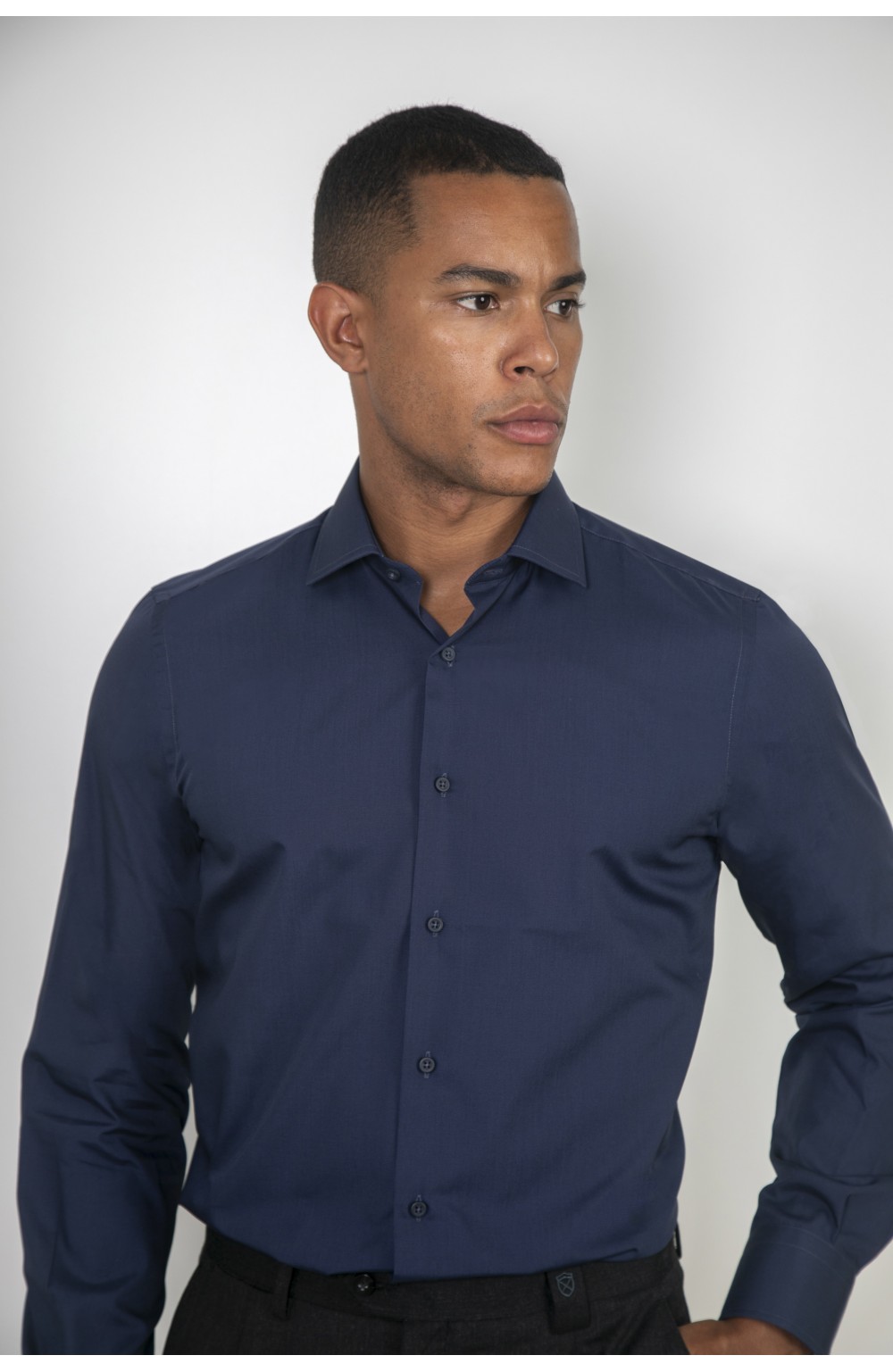 Camisa semi entallada, tejido popelín "fácil plancha" lisa, cuello de vestir y puños con ojales para utilizarla también con gemelos.