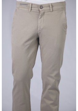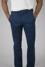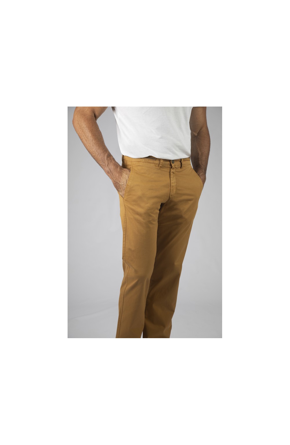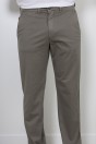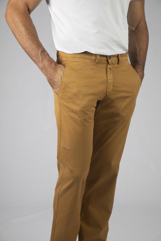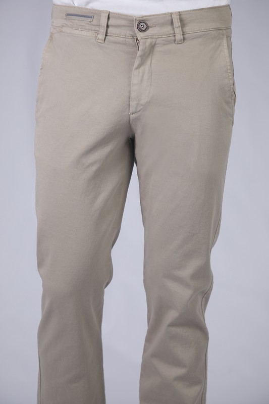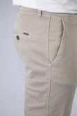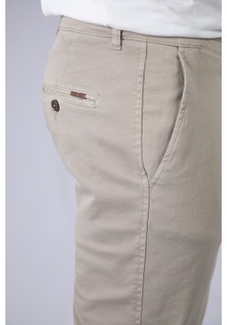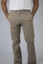 Pantalón casual de algodón/licra, sarga enmerilada, patrón regular y corte francés.