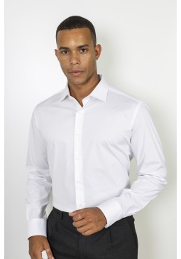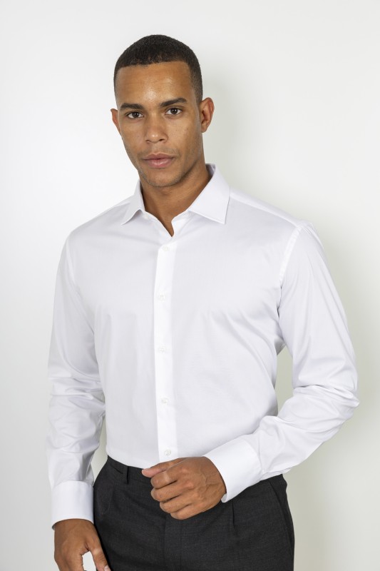 Camisa vestir joven lisa entallada. Cuello de vestir y puño mixto para usarla también con gemelos. Combínala con un pantalón de vestir joven CARLOS CÓRDOBA.