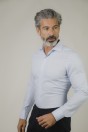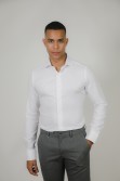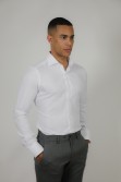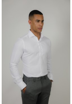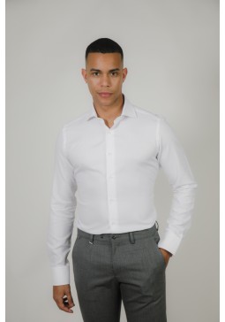 Camisa dobby entallada. Cuello de vestir y puños con doble ojal para poder utilizarla con gemelos