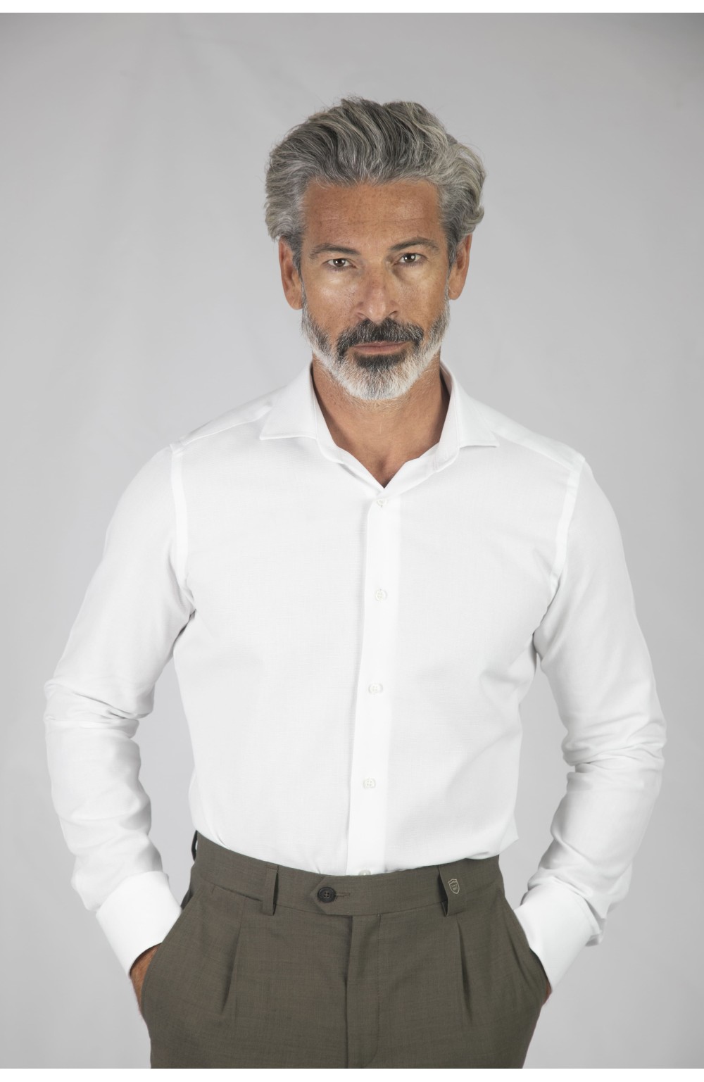 Camisa dobby entallada, tejido 100% algodón, cuello de vestir y puños con doble ojal para poder utilizarla con gemelos. Ideal para combinar con pantalón de vestir CARLOS CÓRDOBA